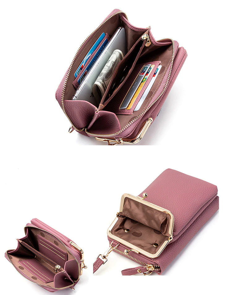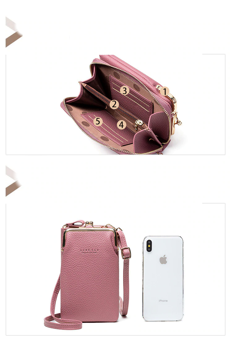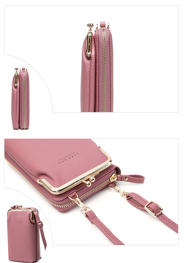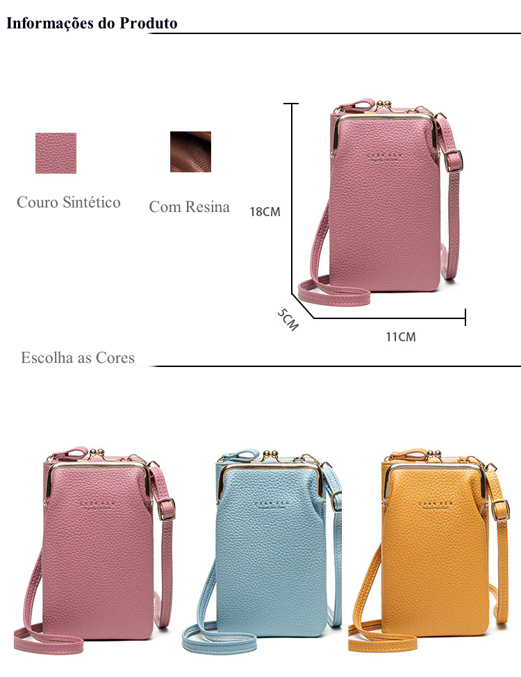 Feita com um desgin leve e estiloso com espaço para tudo que você precisa, podendo colocar o seu celular de todos os tamanhos, cartões, chaves, maquiagens