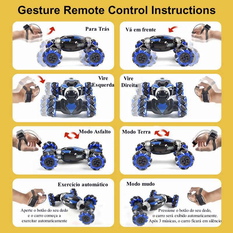 Agora você pode ter o prazer de brincar com seu carrinho remotamente apenas coma função das mãos