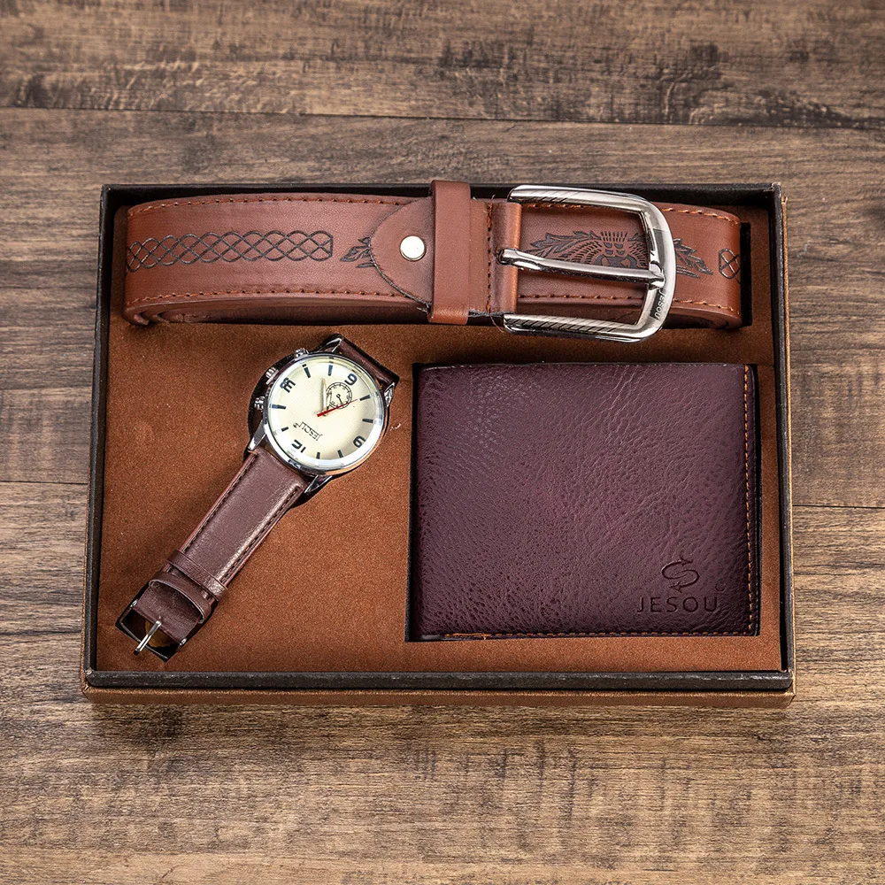 Conjunto Carteira Cinto de Couro e Relógio Masculino, para quem gosta de combinar suas roupas
