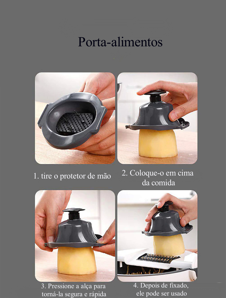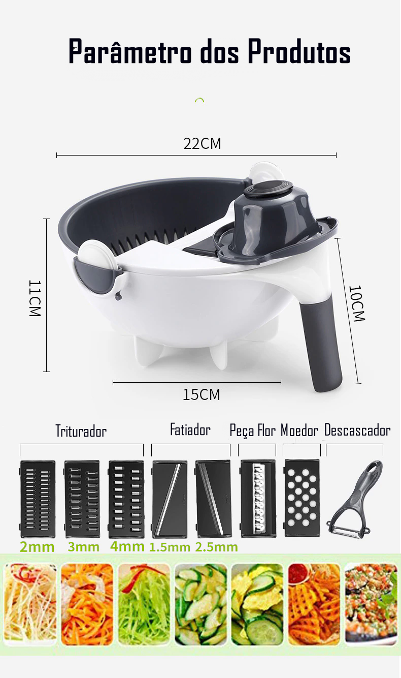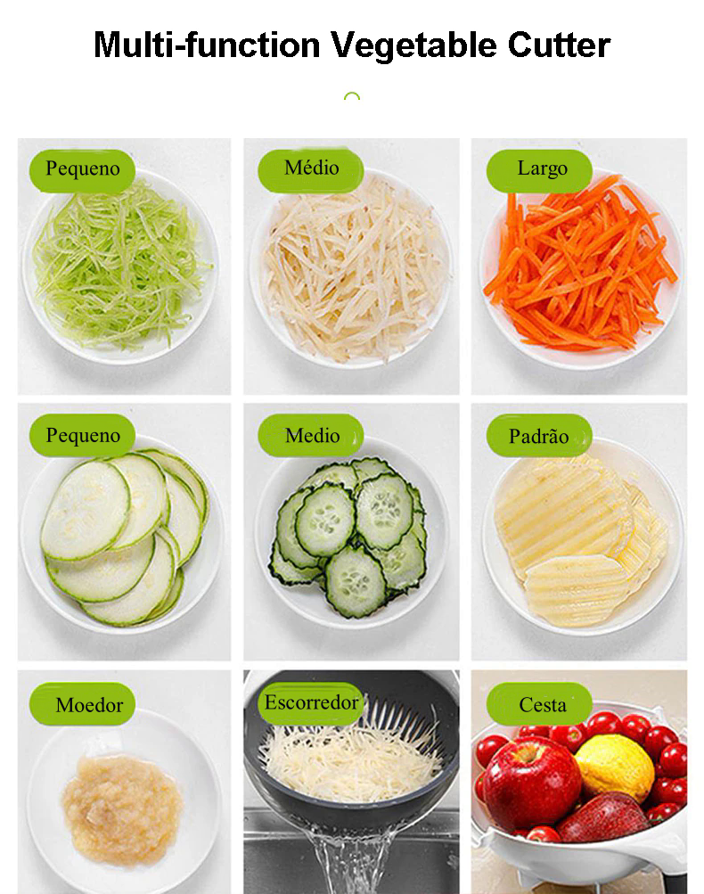 Estas lâminas podem cortar todos os tipos de Vegetais, queijo ralado, corte de batata e corte de frutas, até mesmo pode criar vegetais como pasta ou purê de batatas.