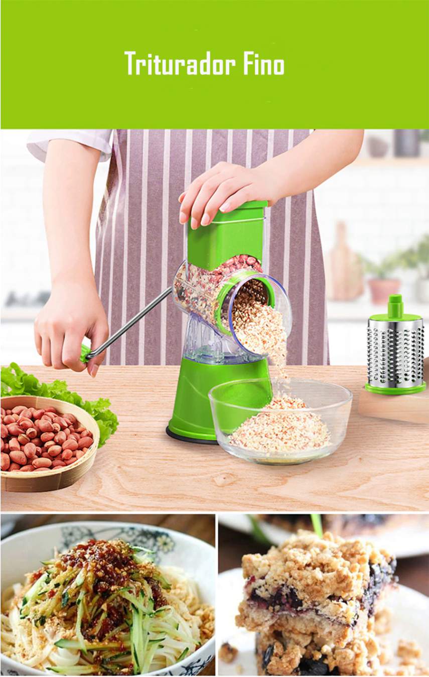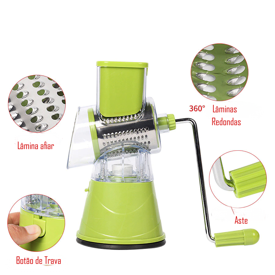 Este cortador de mão, feito de Aço inoxidável na parte do produto comestível & e plásticas nas demais. Oferece toda a funcionalidade de vários aparelhos, com lâminas inoxidáveis mutáveis.