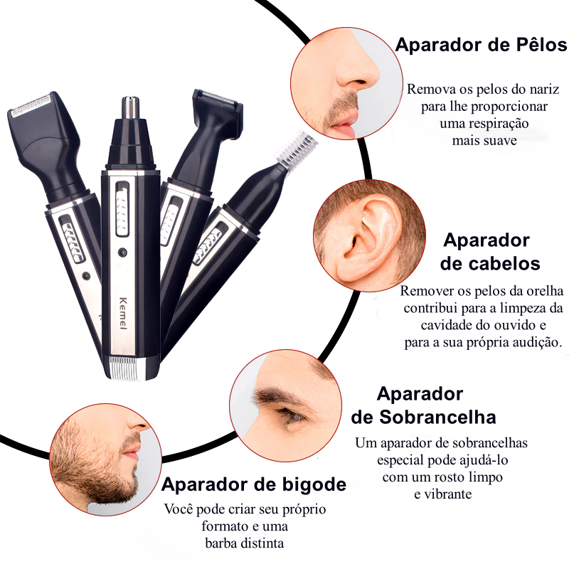 Agora você pode ter em sua casa um aparador Multiuso 4 em 1 para cortar os pelos da barba, sobrancelhas, pelos do nariz e da orelha de forma rápida e com segurança