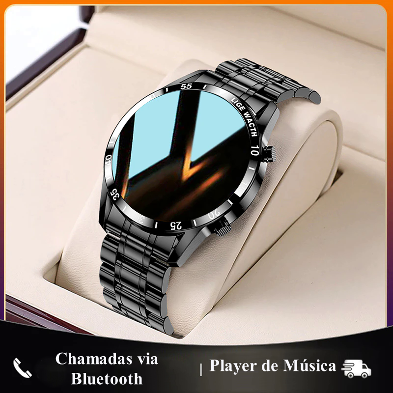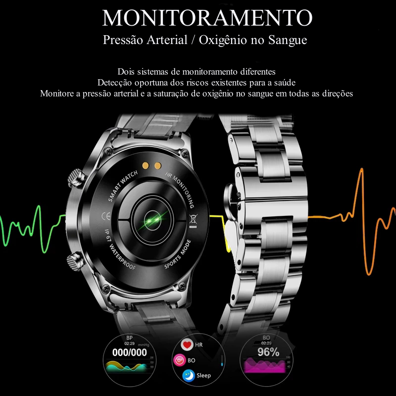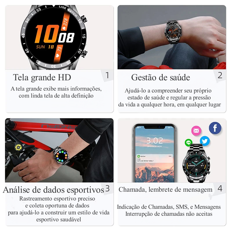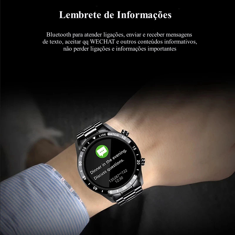 Essa linha é para trás estilo sofisticado para usar socialmente ou na prática de seu esporte, sendo à prova d'água relógio e pode integrar com telefones Android IOS